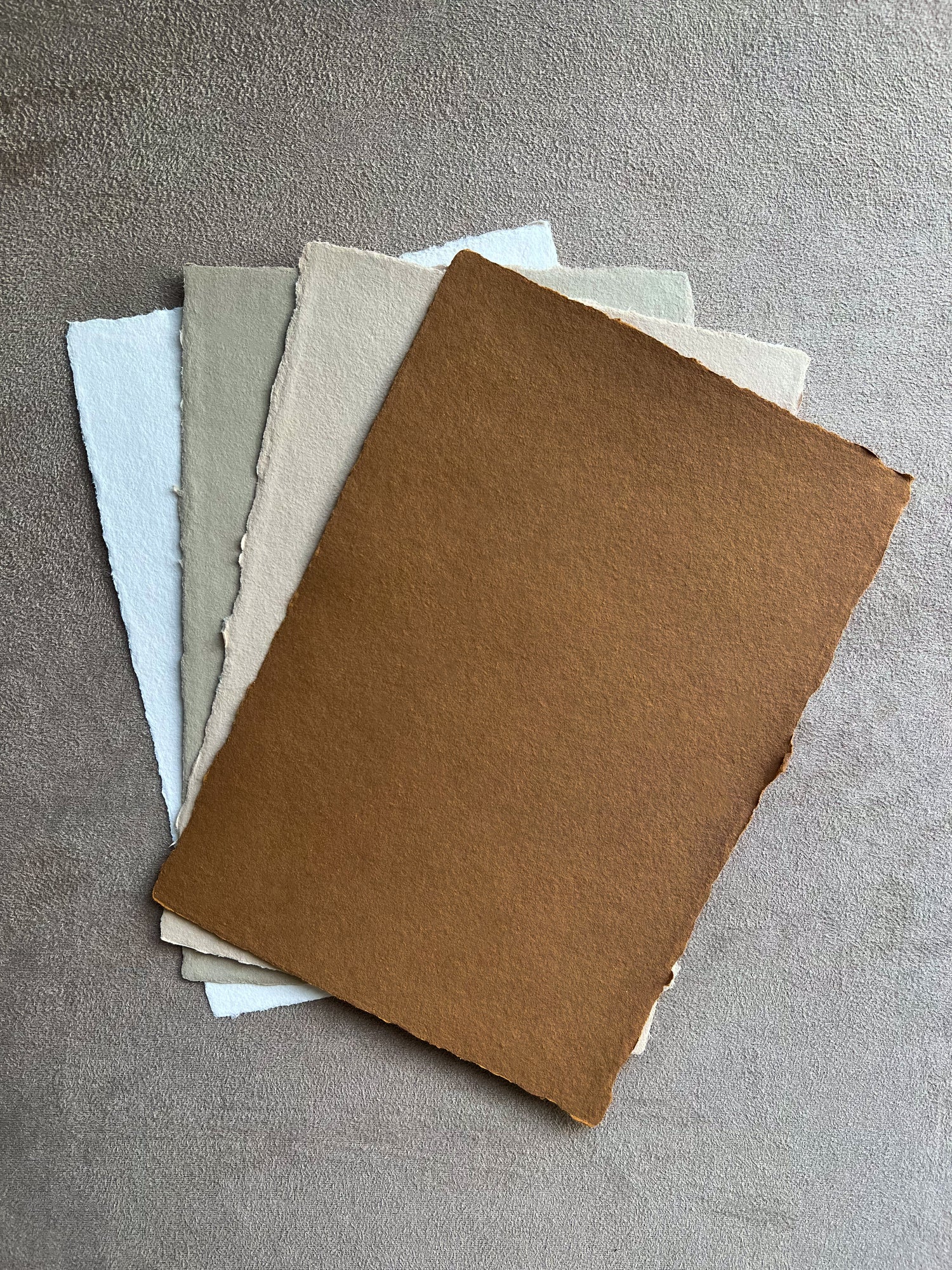 Note: We say approximately, because every sheet is handmade. This means that no two sheets are exactly the same size with the same edges and the same weight. The tint may also vary from batch to batch, but we try our best to keep this as consistent as possible. To us, these irregularities are the beauty of handmade paper.