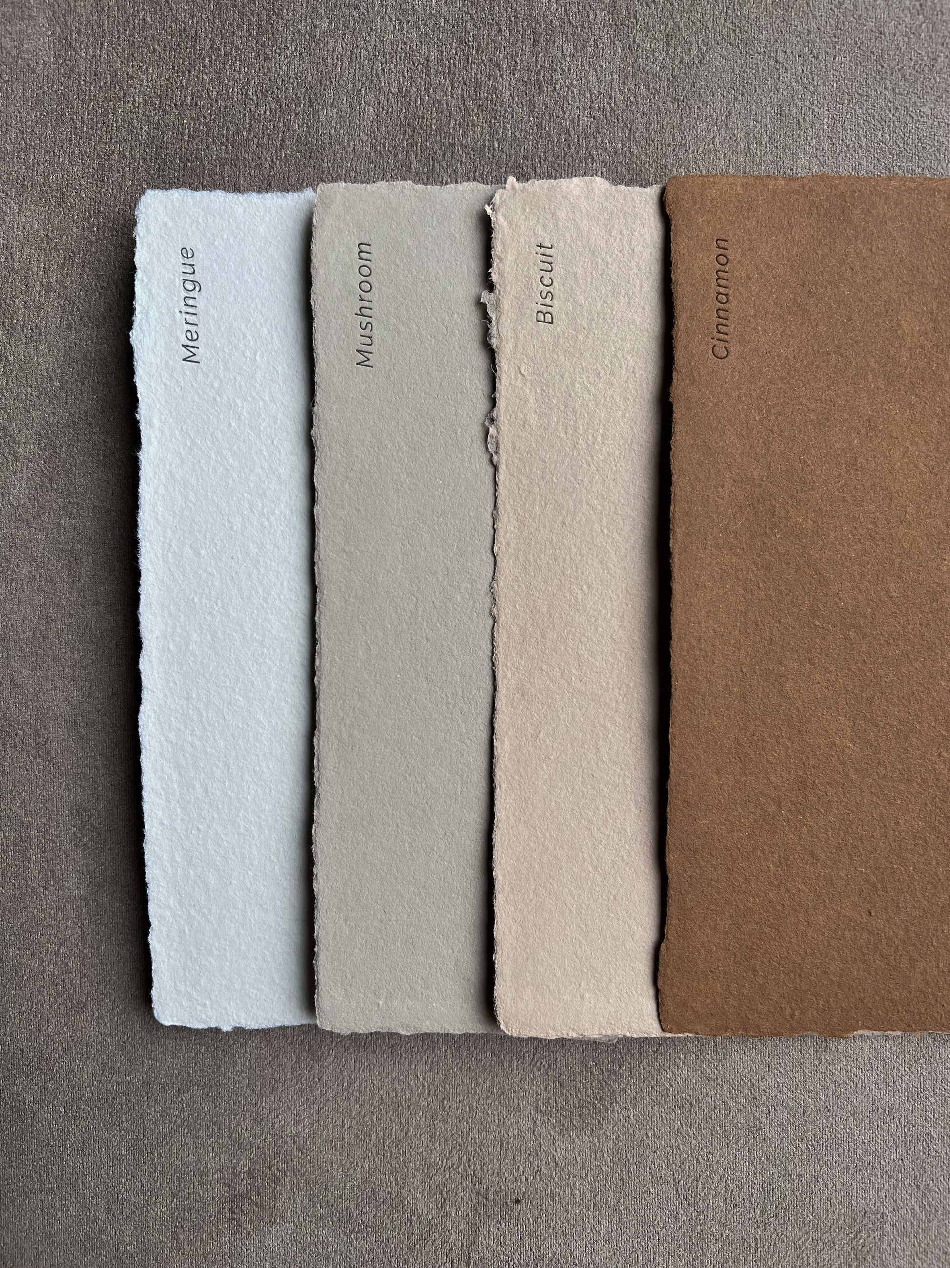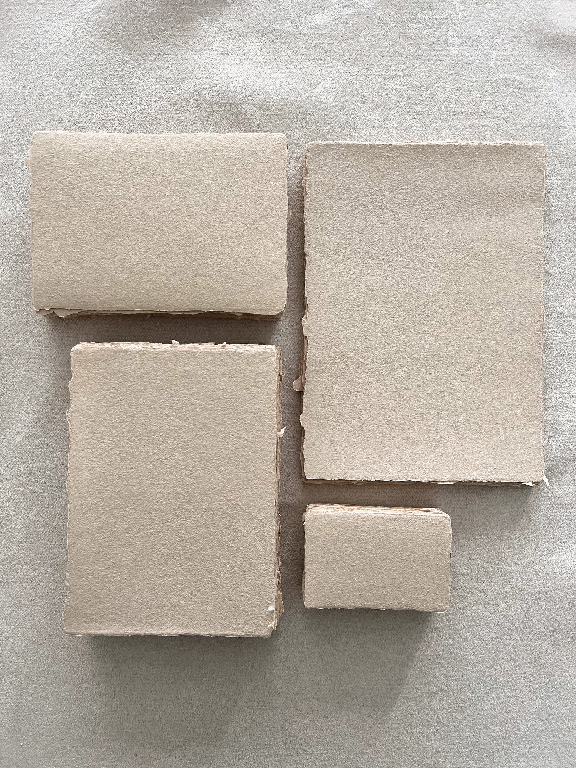 Note: We say approximately, because every sheet is handmade. This means that no two sheets are exactly the same size with the same edges and the same weight. The tint may also vary from batch to batch, but we try our best to keep this as consistent as possible. To us, these irregularities are the beauty of handmade paper.