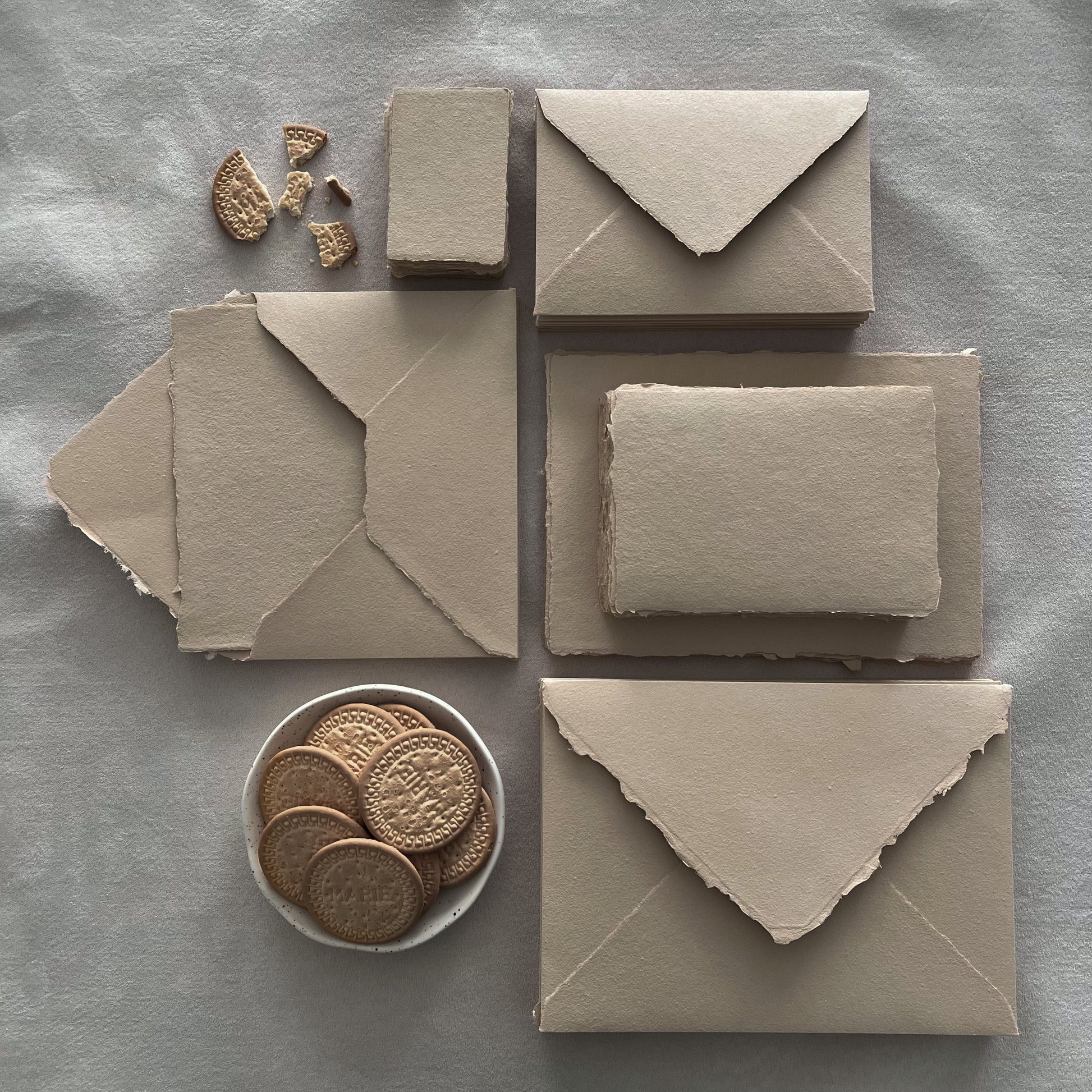 Every sheet and envelope is handmade. This means that no two items are exactly the same size with the same edges and the same weight. The tint may also vary from batch to batch, but we try our best to keep this as consistent as possible. To us, these irregularities are the beauty of handmade paper.