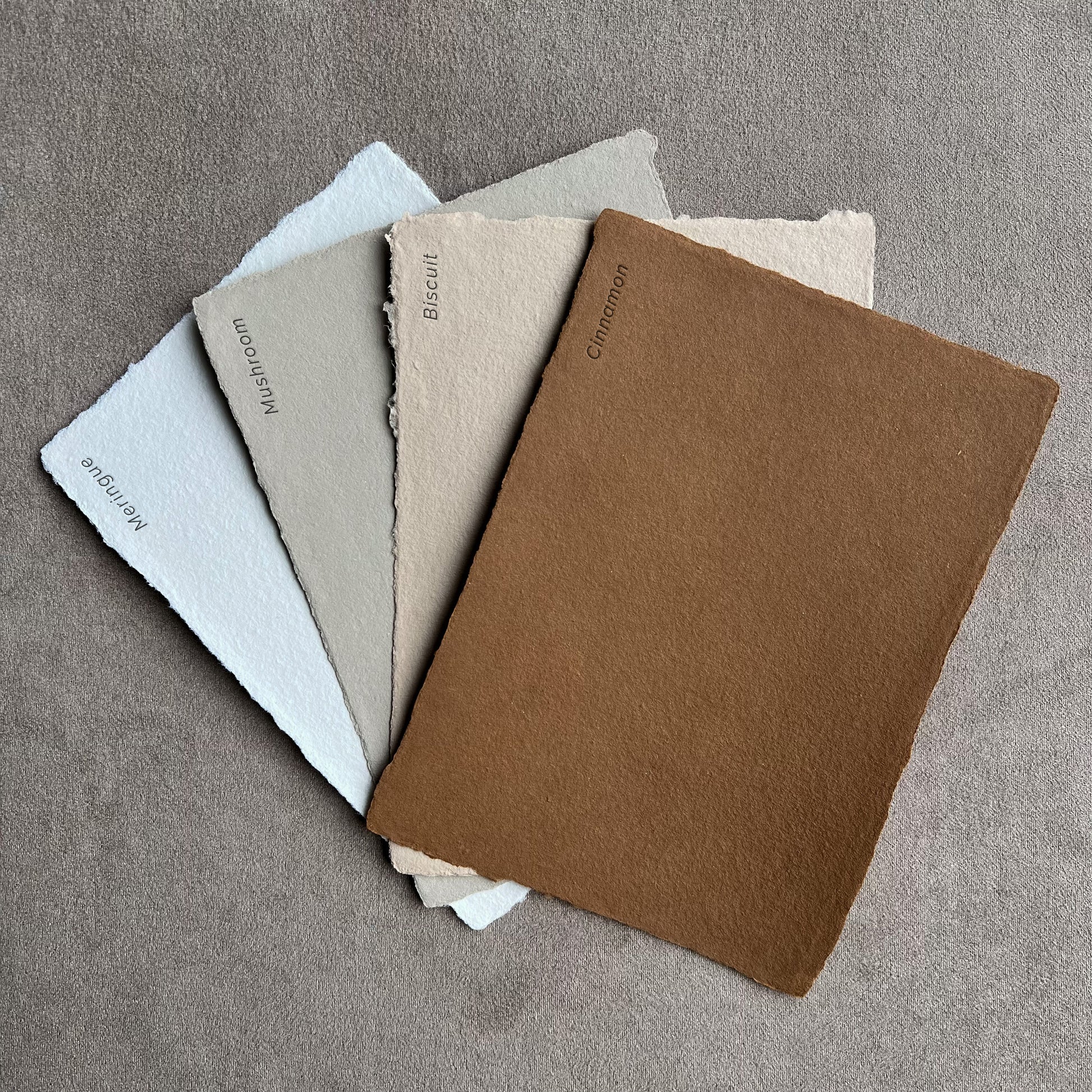 Every sheet and envelope is handmade. This means that no two items are exactly the same size with the same edges and the same weight. The tint may also vary from batch to batch, but we try our best to keep this as consistent as possible. To us, these irregularities are the beauty of handmade paper.