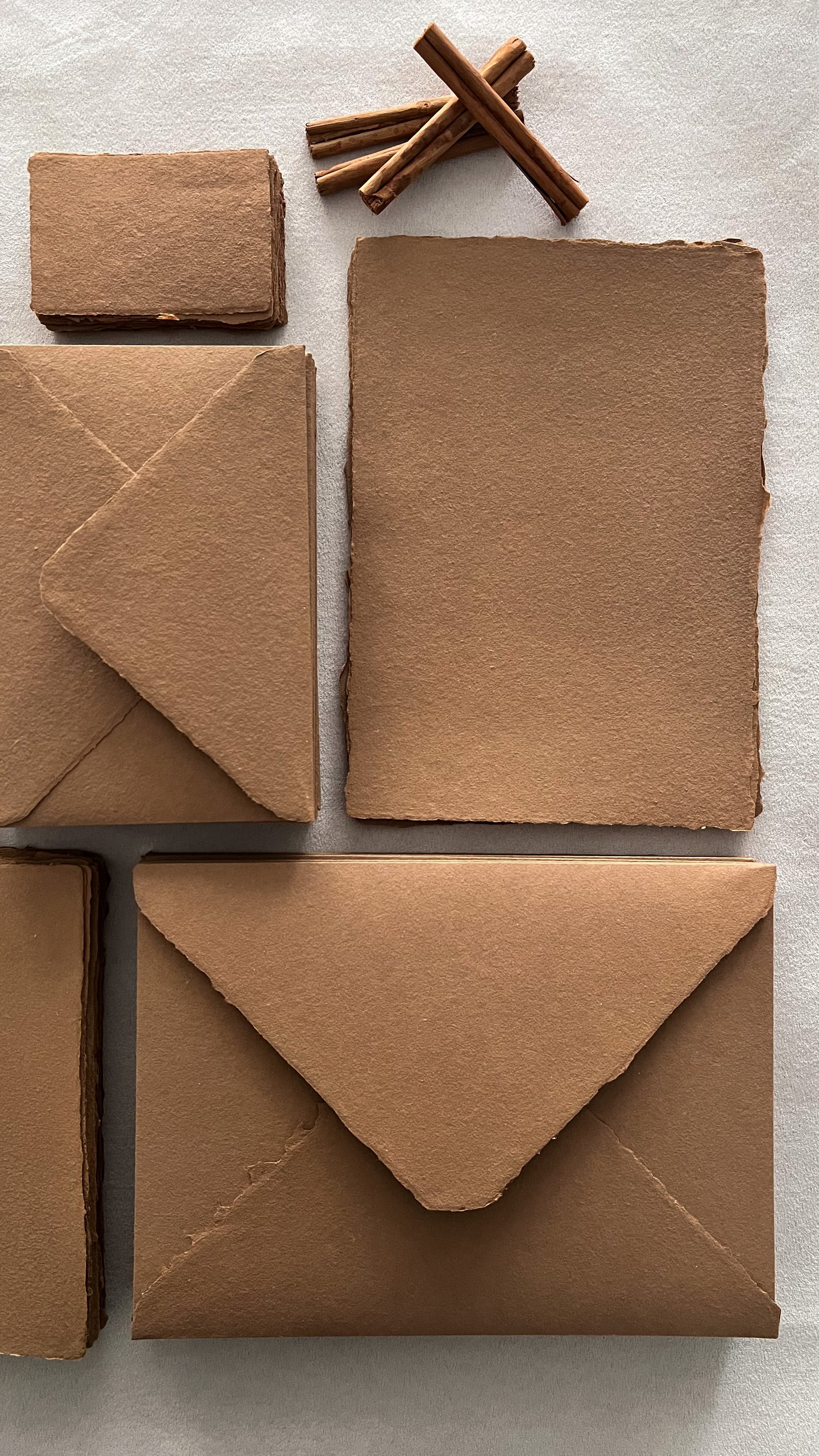 Every sheet and envelope is handmade. This means that no two items are exactly the same size with the same edges and the same weight. The tint may also vary from batch to batch, but we try our best to keep this as consistent as possible. To us, these irregularities are the beauty of handmade paper.