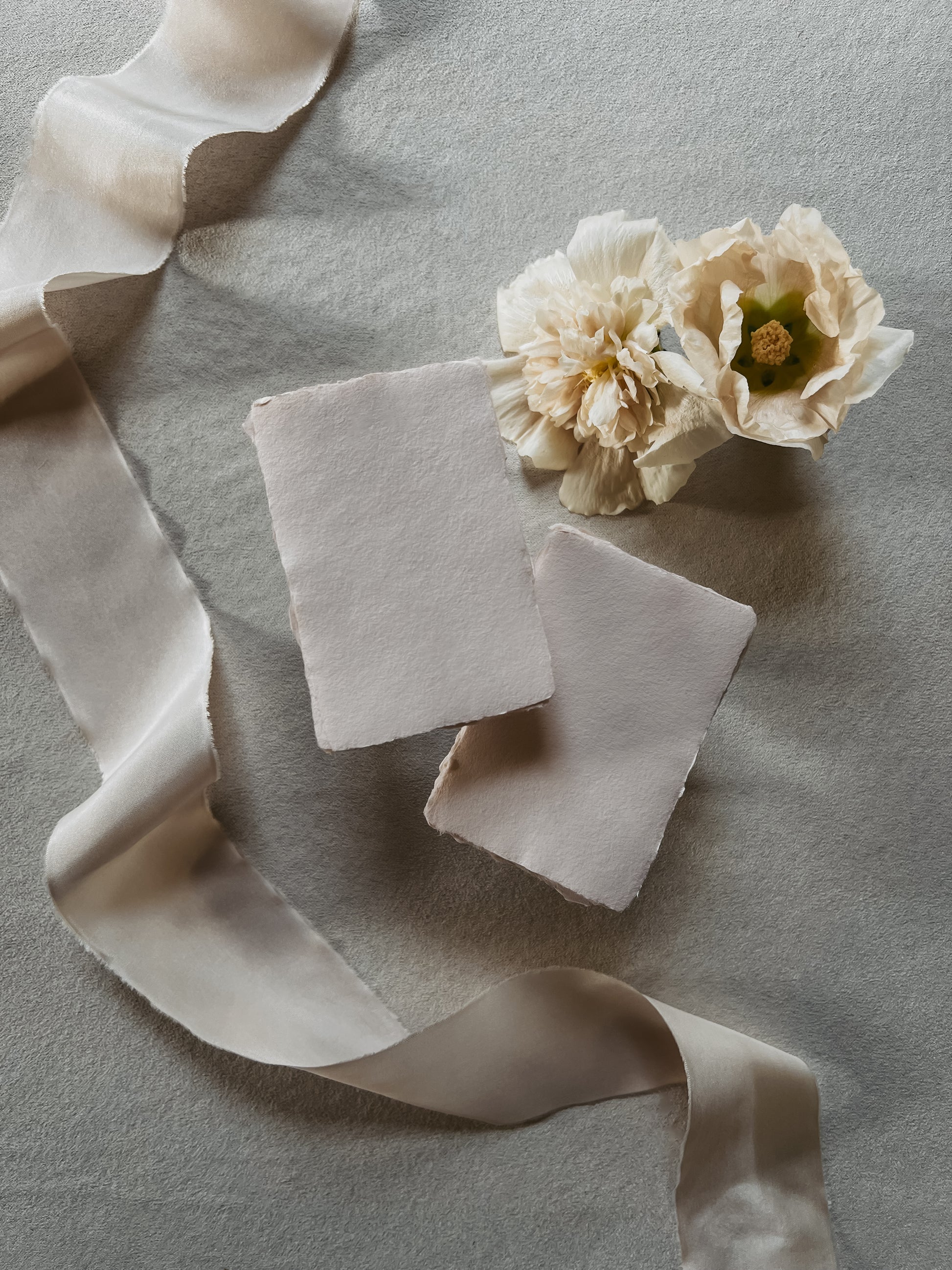 Every sheet and envelope is handmade. This means that no two items are exactly the same size with the same edges and the same weight. The tint may also vary from batch to batch, but we try our best to keep this as consistent as possible. To us, these irregularities are the beauty of handmade paper.