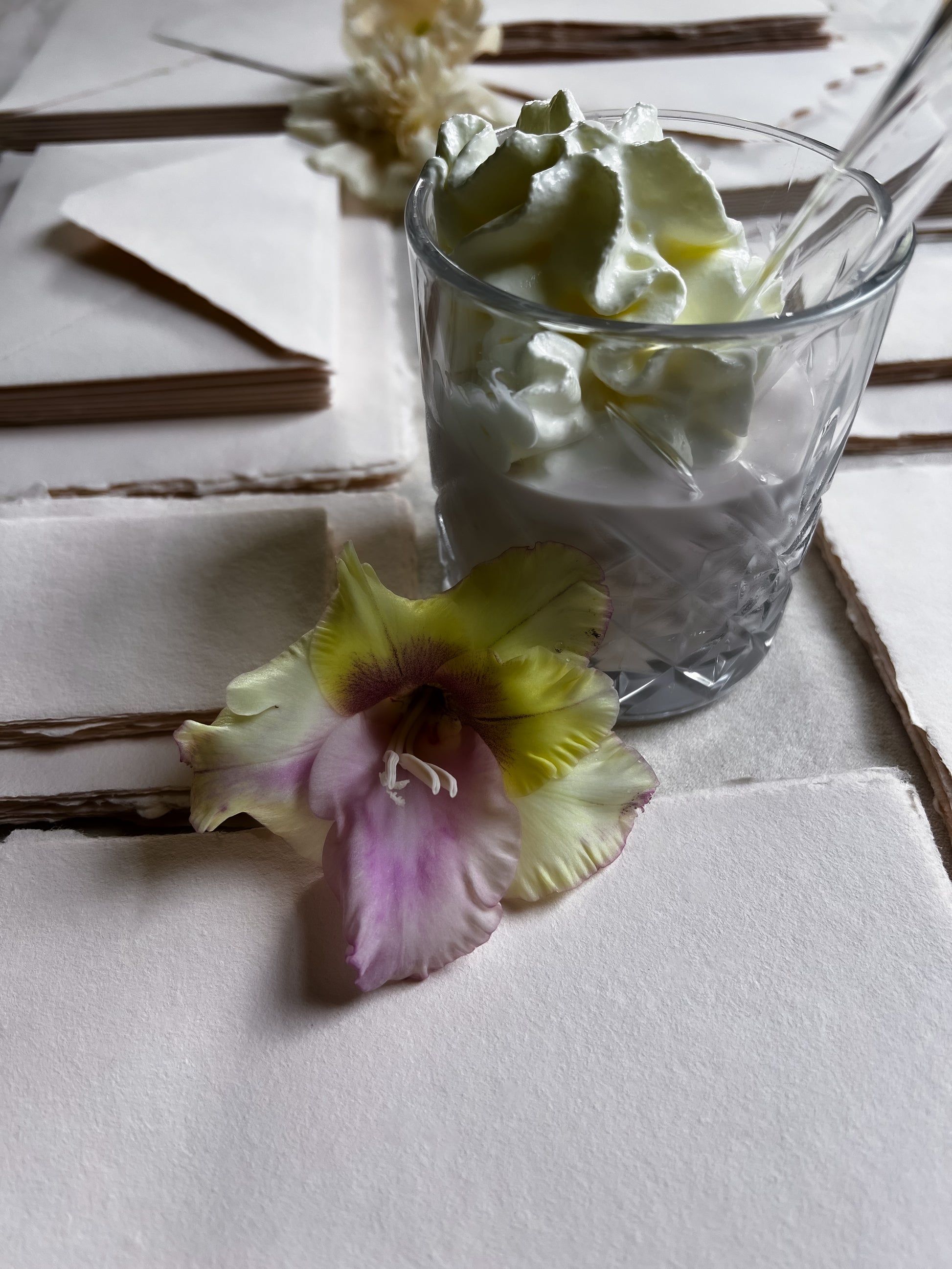 Every sheet and envelope is handmade. This means that no two items are exactly the same size with the same edges and the same weight. The tint may also vary from batch to batch, but we try our best to keep this as consistent as possible. To us, these irregularities are the beauty of handmade paper.