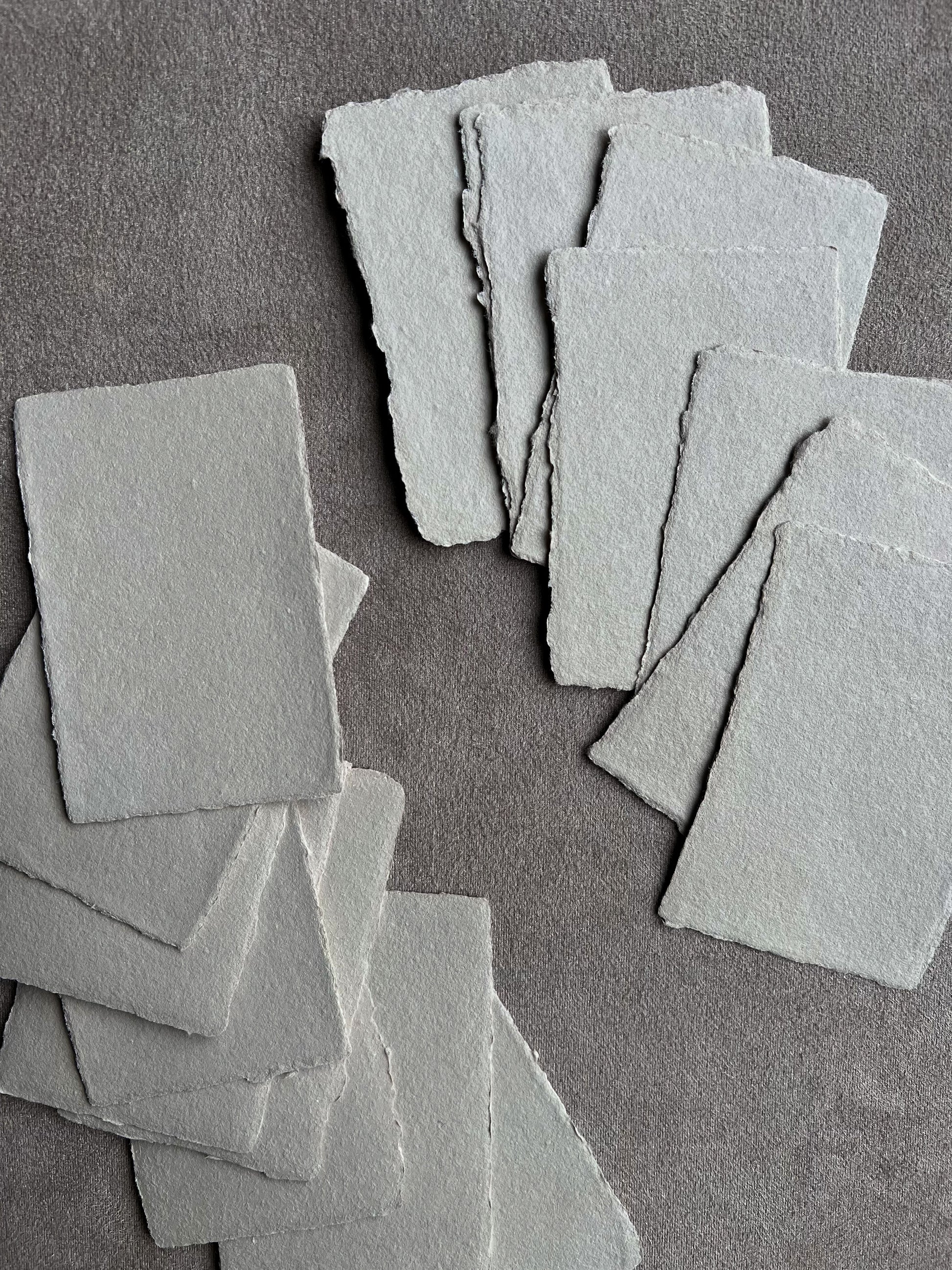 Note: We say approximately, because every sheet is handmade. This means that no two sheets are exactly the same size with the same edges and the same weight. The tint may also vary from batch to batch, but we try our best to keep this as consistent as possible. To us, these irregularities are the beauty of handmade paper.