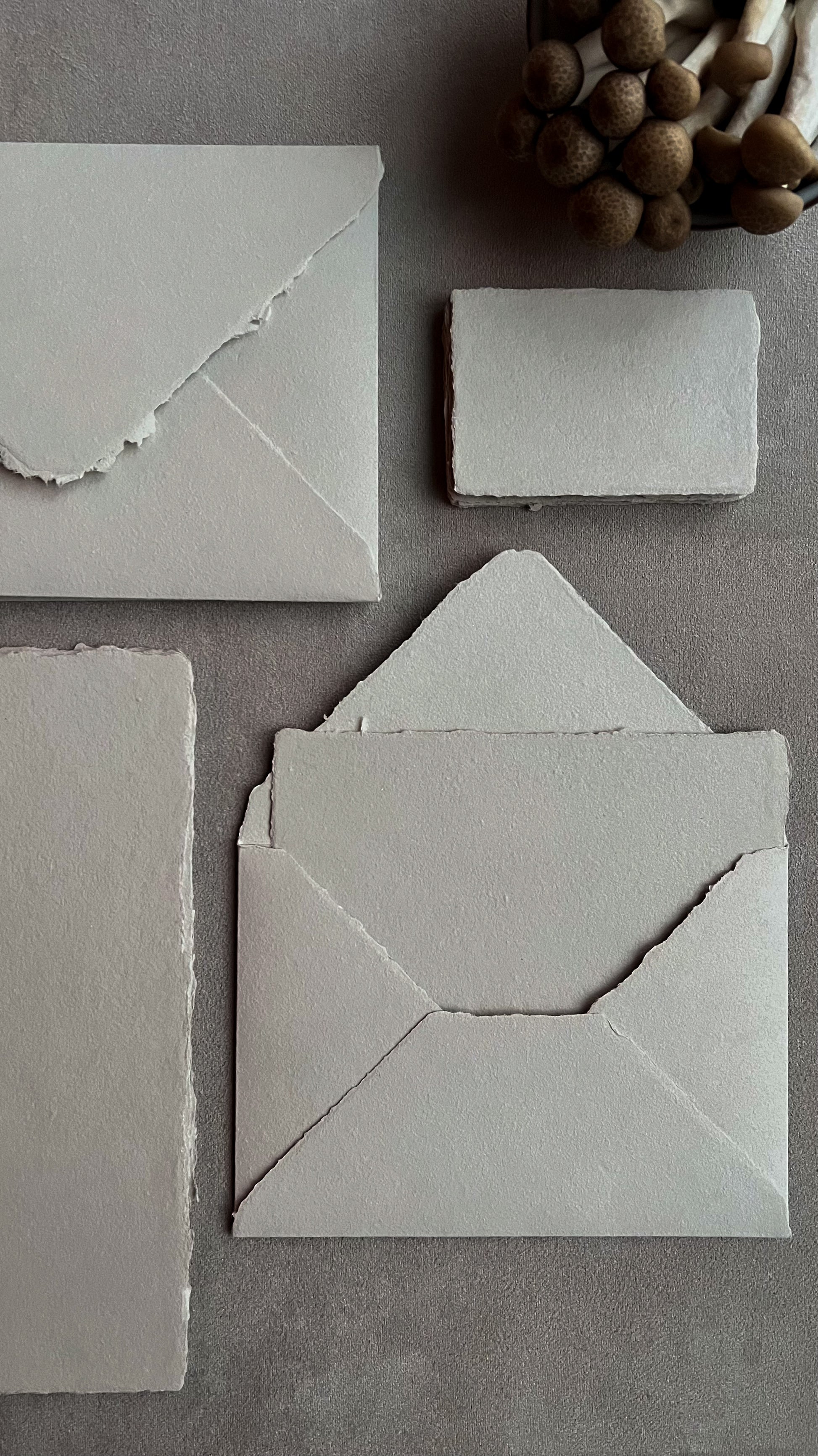 Every sheet and envelope is handmade. This means that no two items are exactly the same size with the same edges and the same weight. The tint may also vary from batch to batch, but we try our best to keep this as consistent as possible. To us, these irregularities are the beauty of handmade paper.