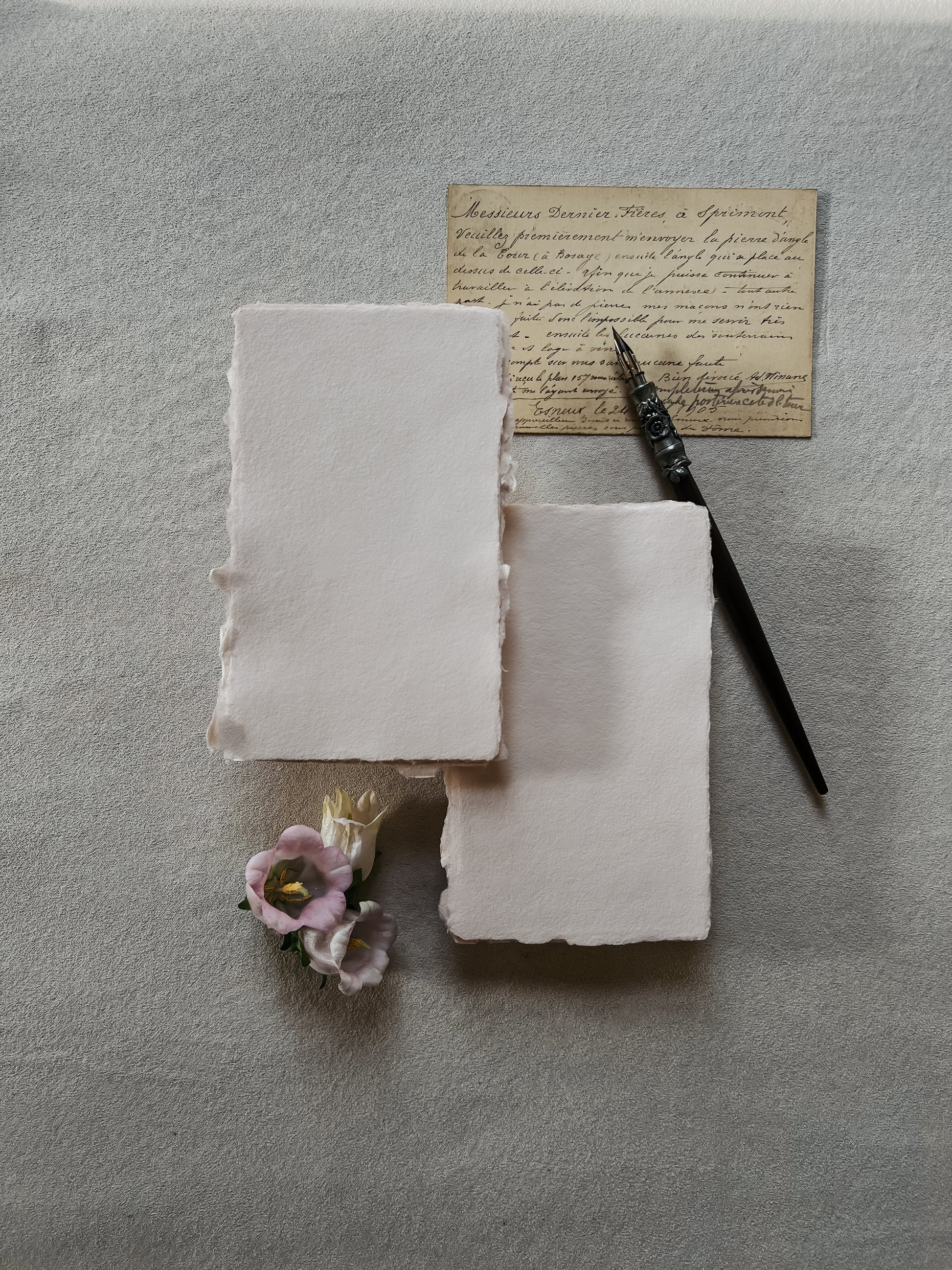 Every sheet and envelope is handmade. This means that no two items are exactly the same size with the same edges and the same weight. The tint may also vary from batch to batch, but we try our best to keep this as consistent as possible. To us, these irregularities are the beauty of handmade paper.